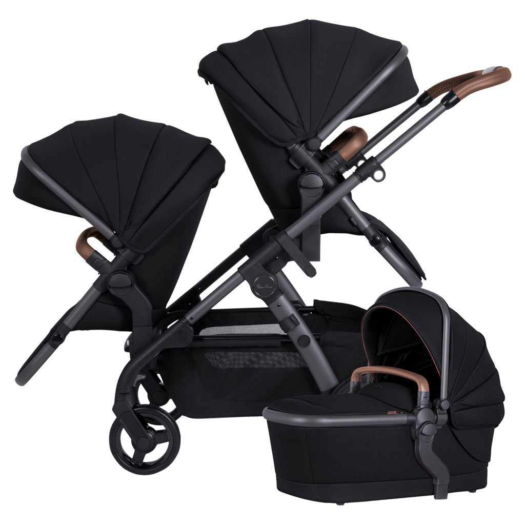 Add a second bassinet, car seat, or tandem seat (sold separately), and the Wave is ready for twins. The included tandem seat can be rear-facing or forward-facing, so you can create a double stroller when you need it. The backrest is adjustable to three positions, including lie-flat, and includes an adjustable leg rest. The canopy and grab bar are interchangeable with the bassinet. Combining craftsmanship with smart features, the Wave 3 transforms to accommodate a second little passenger as your family grows. Out of the box, this ultra-versatile model can accommodate a little passenger from birth or two children of different ages. NEW increased capacity. The main seat and tandem seat allow you to carry two children up to 25 kg (55 lb). NEW larger basket. Holds all the items your family needs during the ride.